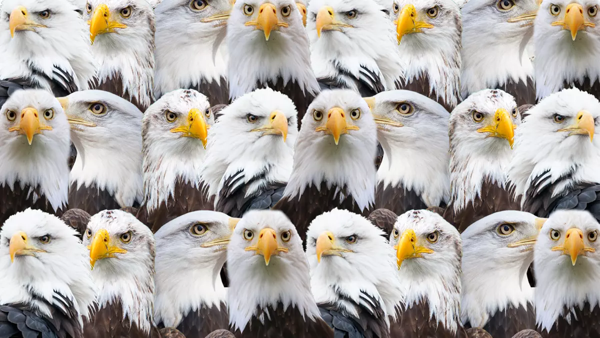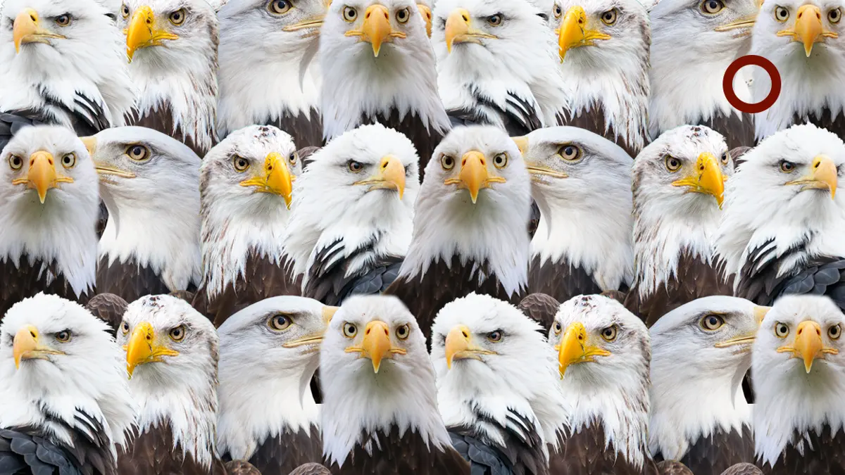 Görselin sağ üst kısmına dikkatlice bakıldığında, kartalların arasında gizlenen beyaz kediyi görmek mümkün.